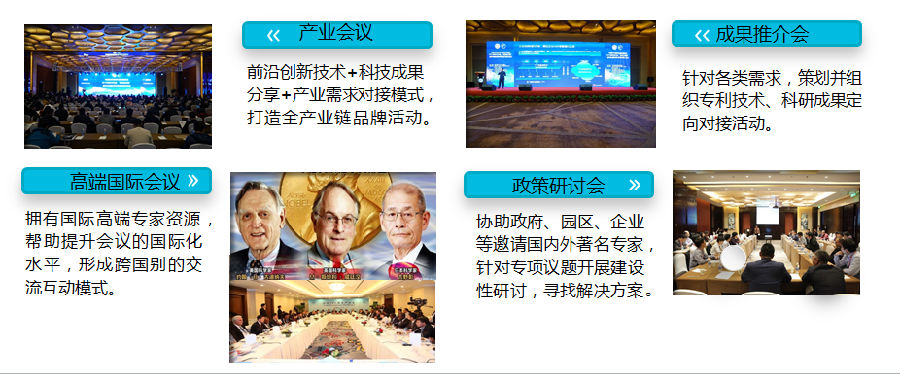 ——科技成果转化、人才项目对接服务如果您是产业园区、招商引智部门、企业事业单位:我们为您提供“1+2+3+4”服务,即: 1个量身定制的专项活动, 2化标准:高端化、国际化, 3个特点:实效性、开放性、包容性, 4个要素:金融、科技、产业、人才四要素相结合。为主办方技术交流、科技成果转化、人才项目落地、业界提升知名度提供务实服务。
